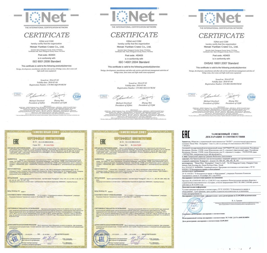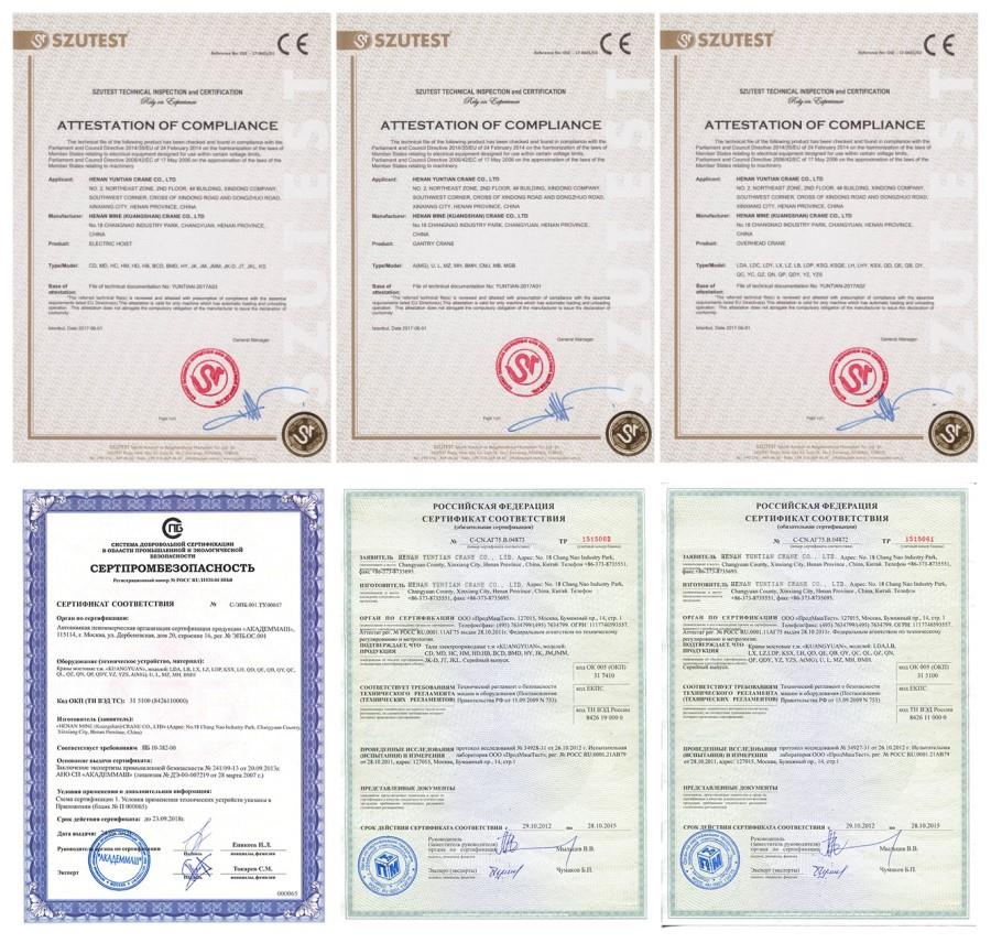 Cần cẩu của chúng tôi đã thông qua CE, ISO, GOST, SGS, TUV, BV, và như vậy.